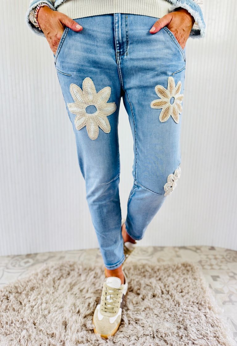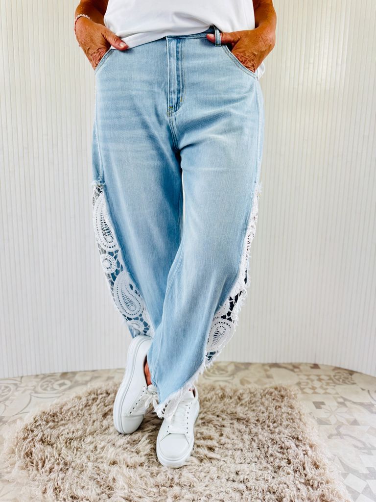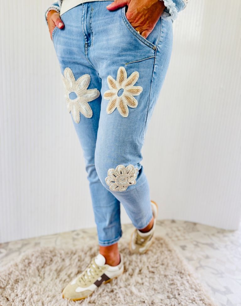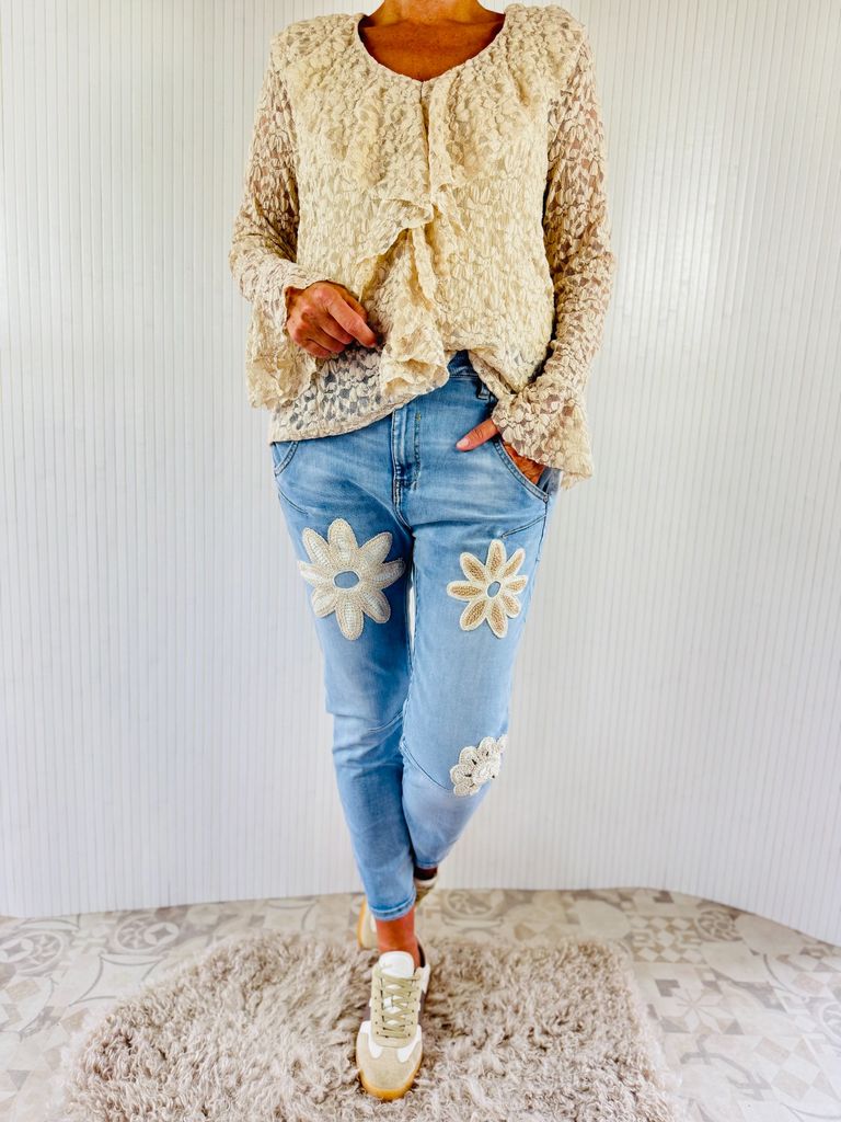 Ganz leichte Jeans mit Spitzendetails