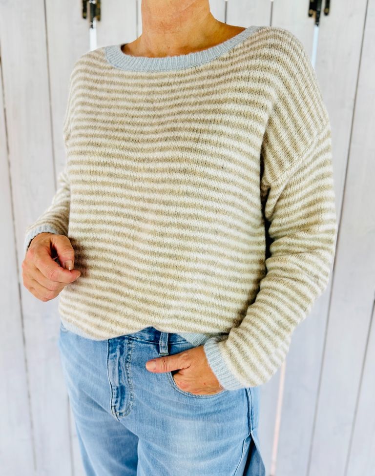 Damen Pullover, Ringelpullover mit Cashmereanteil & Teddytasche