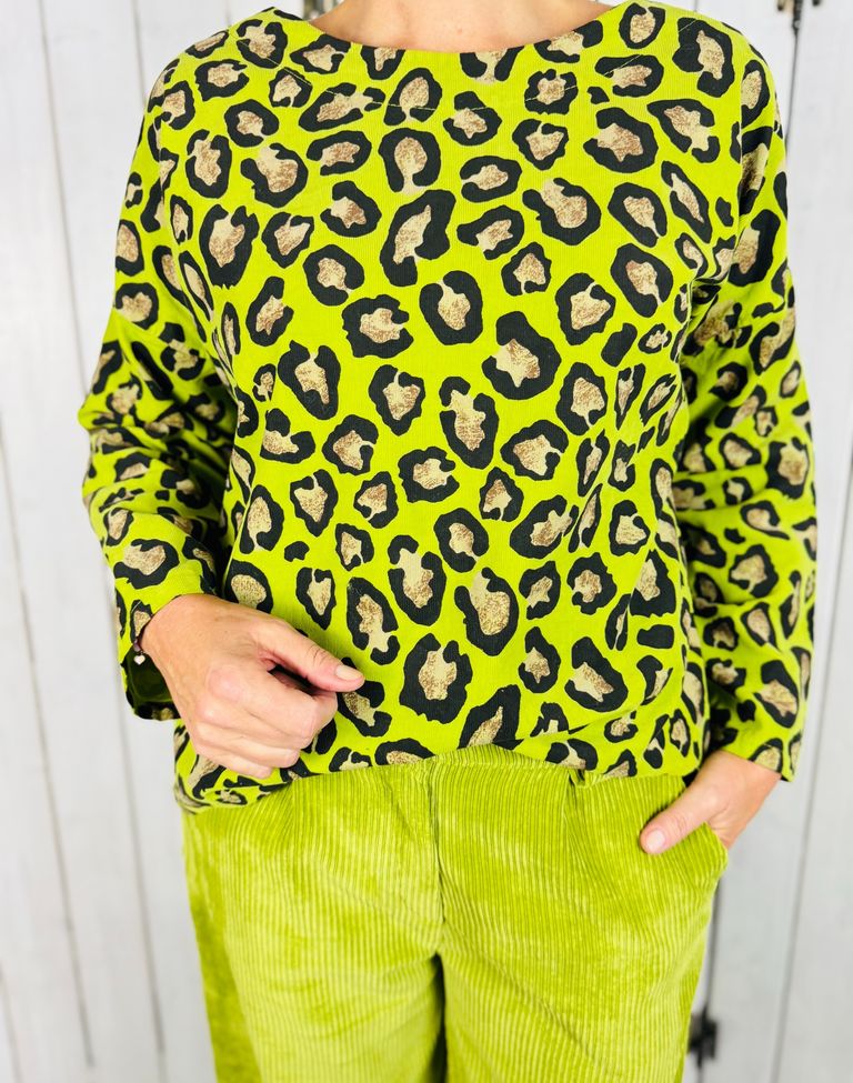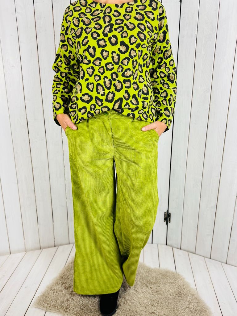 Damen Shirt Leo & Cordhose in Kiwigrün
