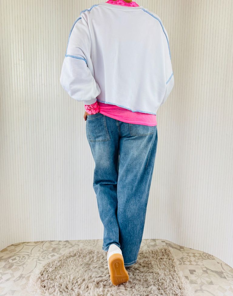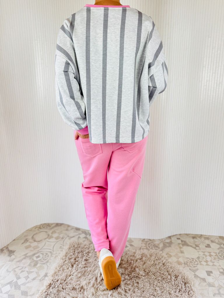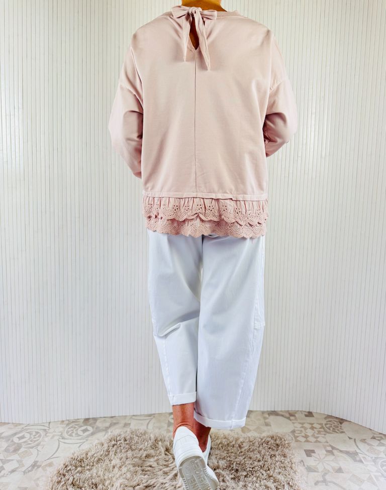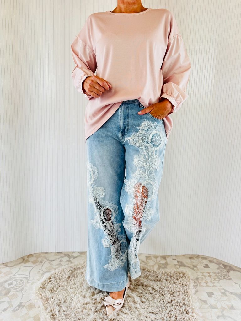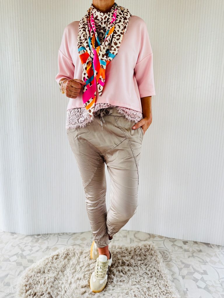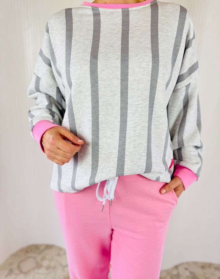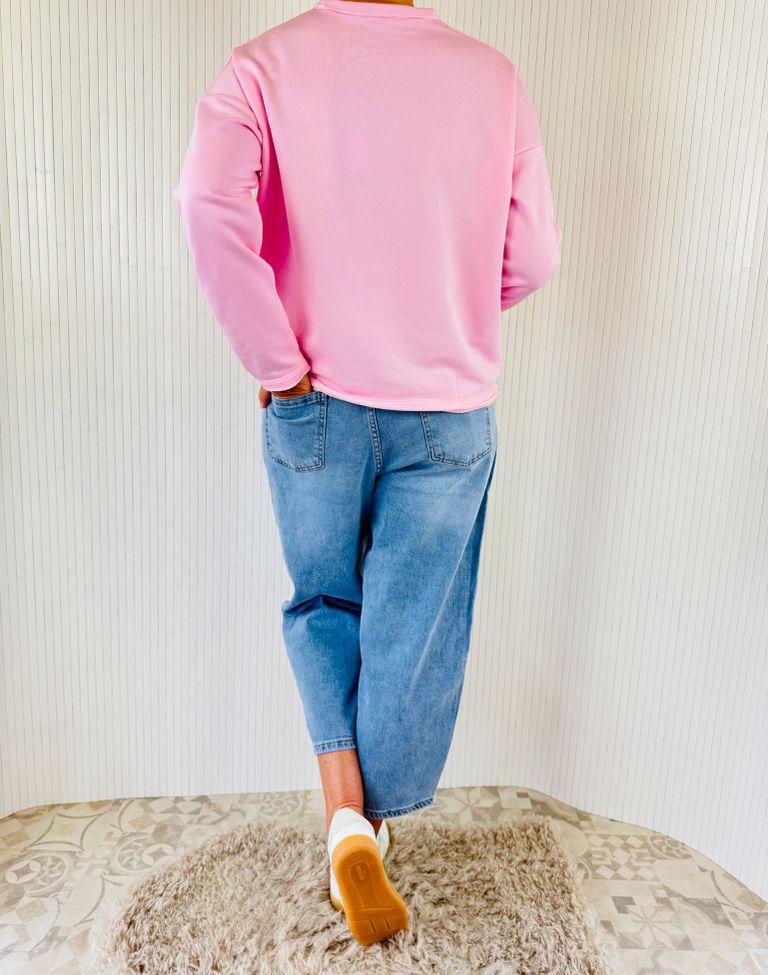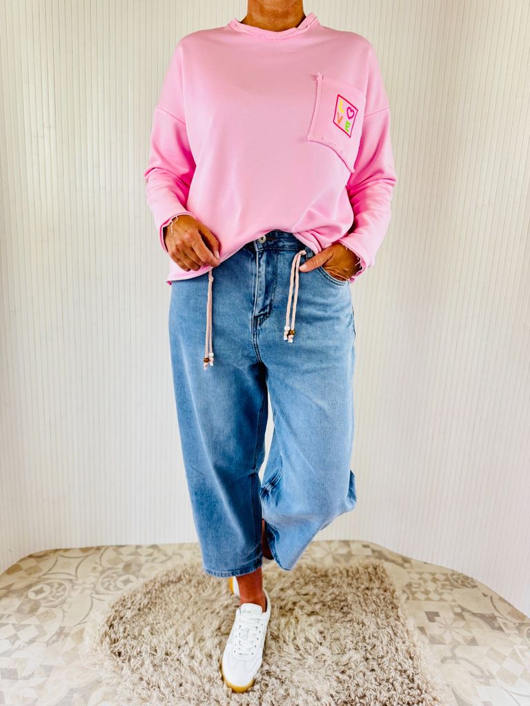 Sweatshirt & Jeans mit Rosa Schmuckband