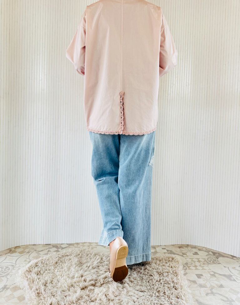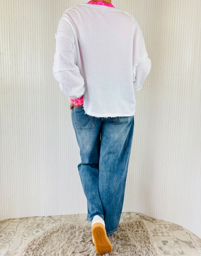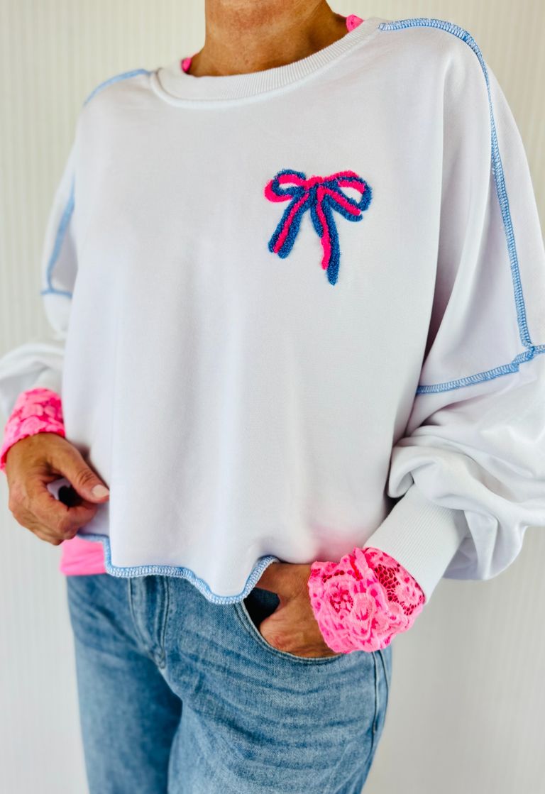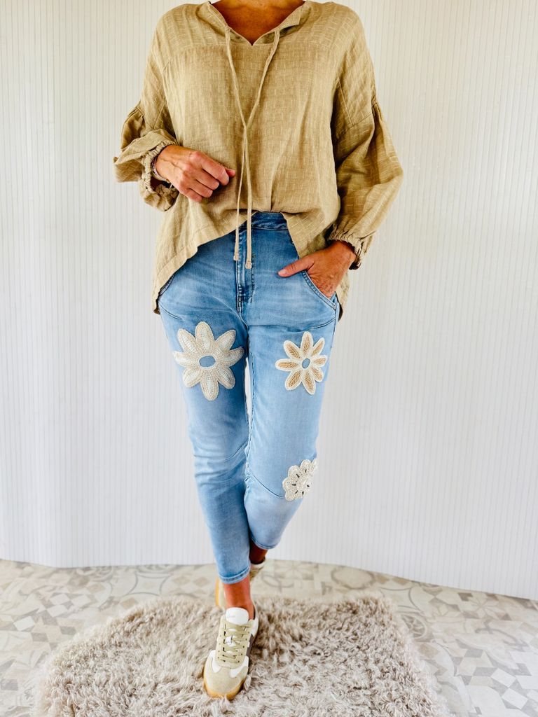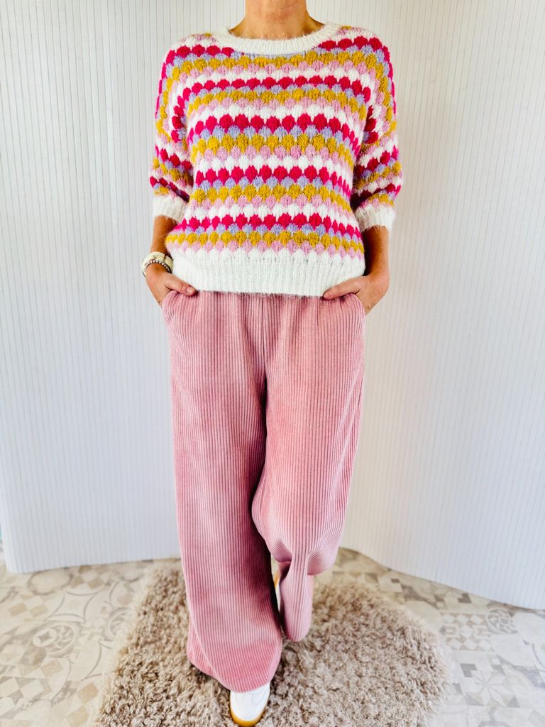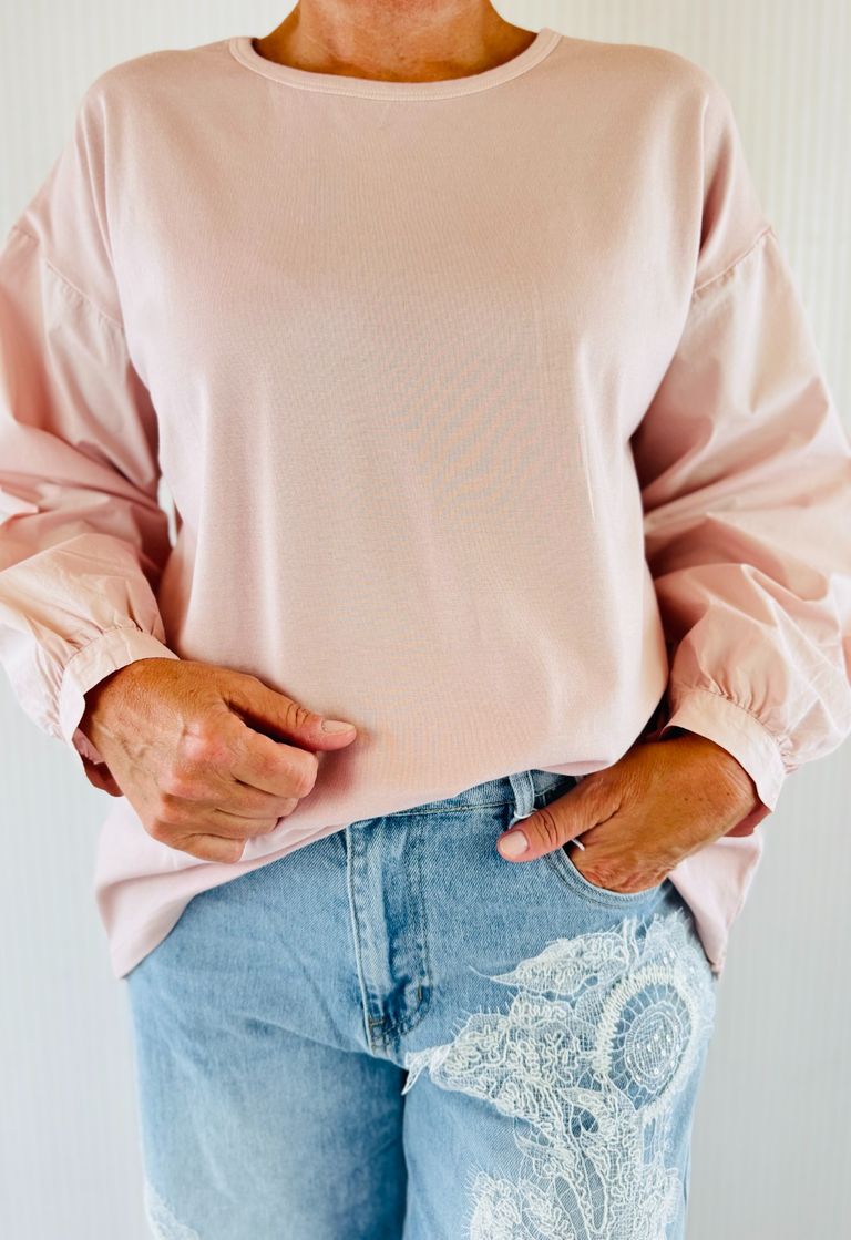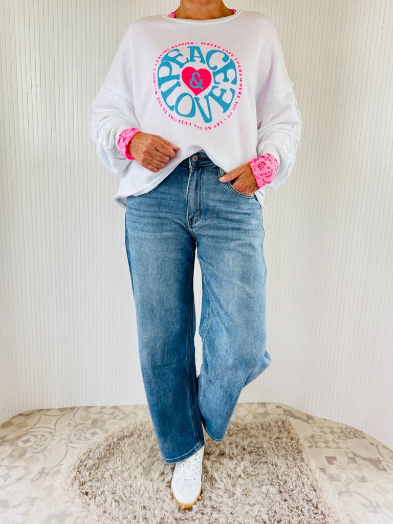 Sweatshirt & Jeans mit Rosa Schmuckband